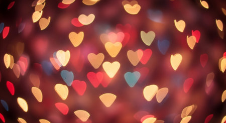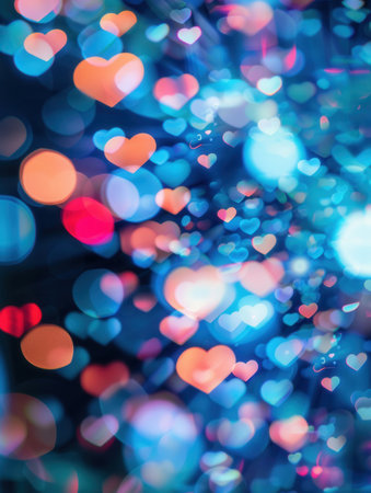 Gentle hearts in a vibrant, blurred backdrop create a romantic, whimsical atmosphere for special occasions and love-themed events.