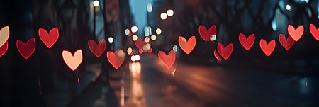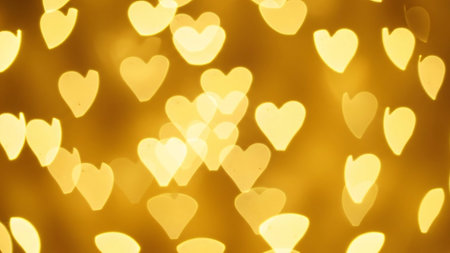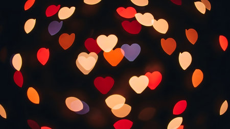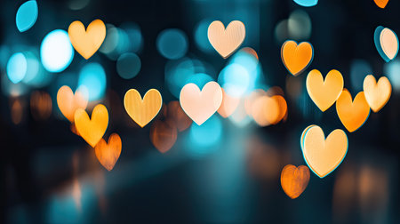 Beautiful heart-shaped bokeh lights create a dreamy atmosphere, perfect for romantic settings or festive occasions. A visually striking symbol of love and warmth.