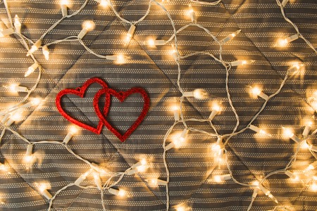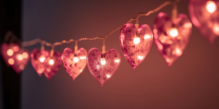 Garland with pink hearts. Valentine's Lights. Decoration for Valentine's Day or Christmas