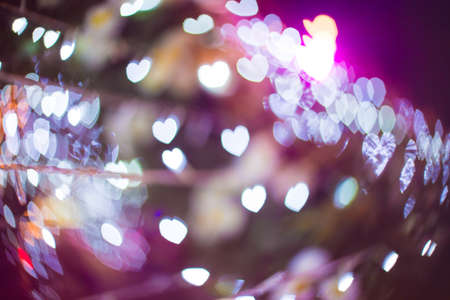Heart bokeh background, Blurred background. Night city lights blur.Abstract image of blur motion of cars on the city road at night