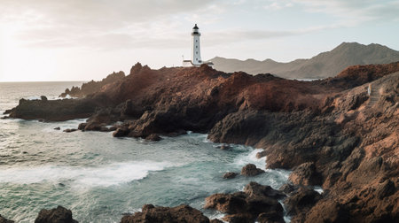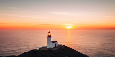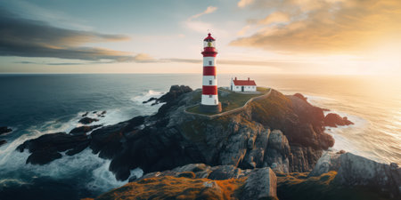 The Majestic Sunset: A Beautiful Lighthouse on the Rocky Coastline, Guiding Travelers towards Serenity and Adventure amidst the Scenic Ocean Landscape