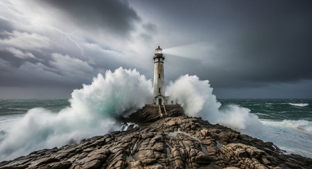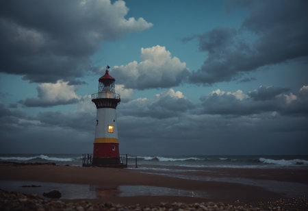 Majestic Coastal Lighthouse Standing Tall Against the Stormy Sky, Guiding Ships Safely to Shore