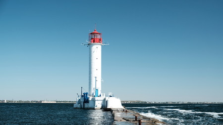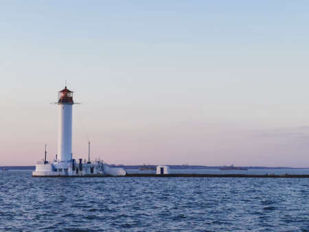 Lighthouse at sunset in port Burgas, Black Sea, Bulgaria.