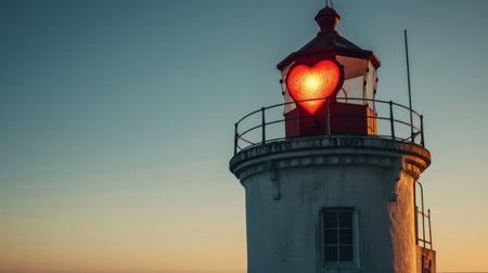 In the evening, a lighthouse stands resilient in the sea, its guiding light illuminating the path for ships, ensuring a safe arrival at the coastline.
