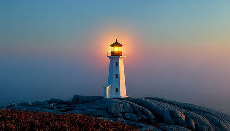 Twilight Serenity at Peggy s Cove Lighthouse Illuminates Nova Scotia s Rugged Coastline Beauty