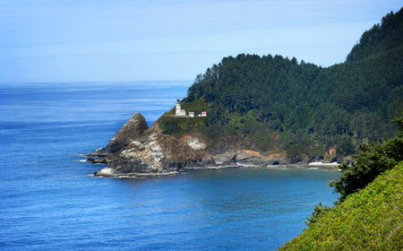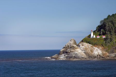 Lighthouse on the coast of the Pacific Ocean in Oregon State.