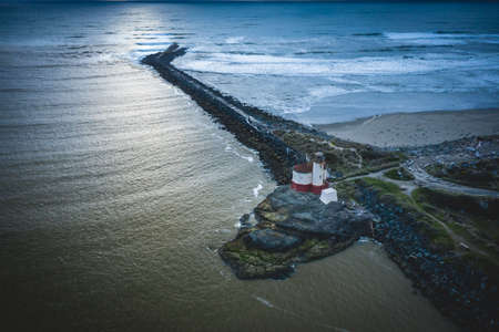 Coquille River Lighthouse in Bandon from aerial view