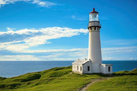 bright lighthouse in pacific norhtwest overlooking pacific ocean