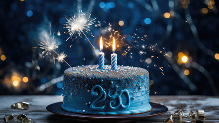 Celebrating a special milestone with a beautifully decorated birthday cake featuring a blue number 20 candle