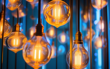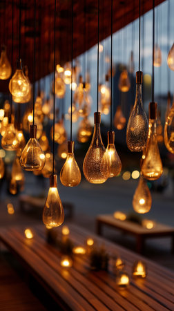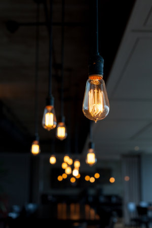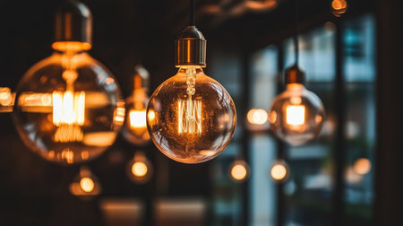 Charming collection of elegant hanging light bulbs illuminating a modern interior space. Perfect for enhancing atmosphere and aesthetic appeal in design.
