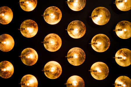Background - electric garland with incandescent bulbs, yellow warm light, retro style