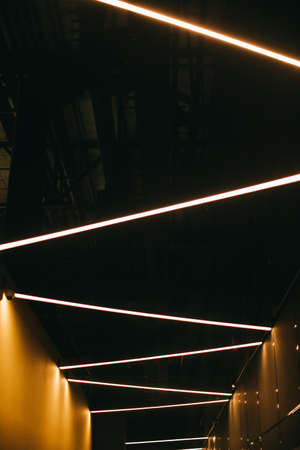 Lights on the ceiling. Glowing neon lamps on the ceiling.