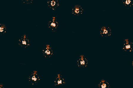 Vintage incandescent Edison light bulbs glowing in the dark.