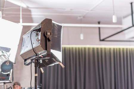 studio light of professional video production on stage with nobody in movie studio and blur background ,selective focus.