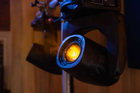 Concert light head close up view. Stage light in the dark.