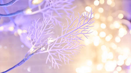 Magic holiday sparkling background with christmas decorations and lights