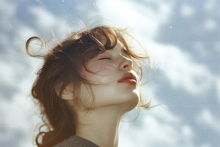 Woman with closed eyes enjoying sunlight outdoors