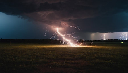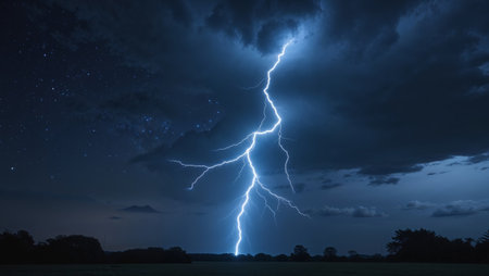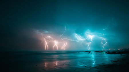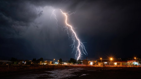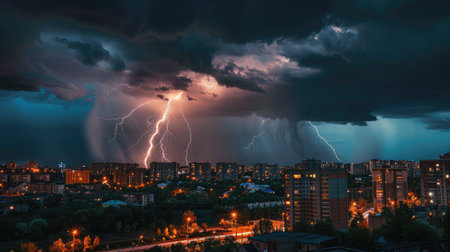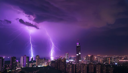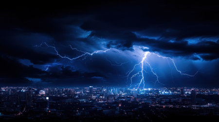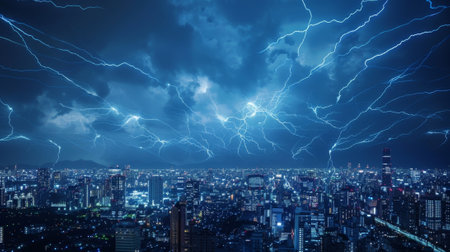 A lightning storm over a city, highlighting the power of natural phenomena.