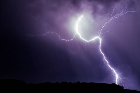 Lightning strike in the night sky. Thunderstorm. Abstract background.