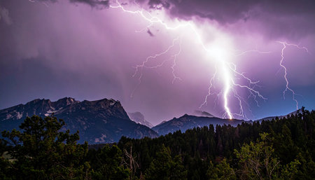Lightning in the sky over the Rocky Mountains of Colorado, USA.