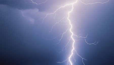 A striking image of lightning illuminating dark storm clouds at dusk, capturing the raw energy and beauty of nature during a powerful thunderstorm.