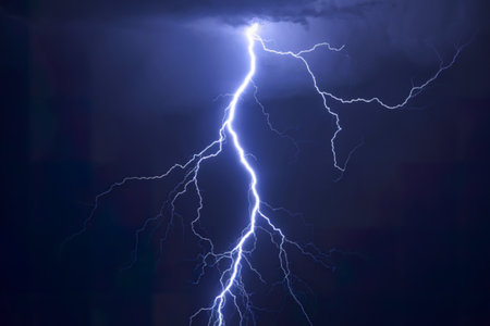 Beautiful lightning on a dark blue sky during a thunderstorm