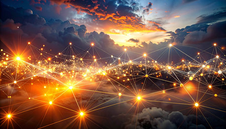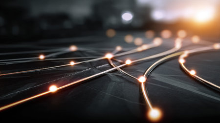 Softly glowing lights form a complex network against a dark, textured background, creating an intriguing abstract representation of connectivity in the digital realm.