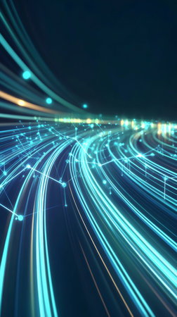 This abstract image features glowing lines and dots against a dark background, representing technology, energy flow, and modern connectivity in a dynamic visual experience.