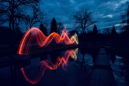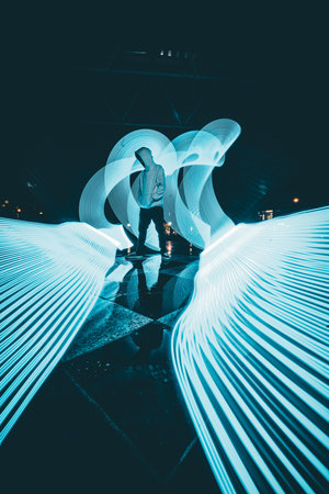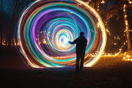 Creative light painting with colorful trails creating abstract shapes at night
