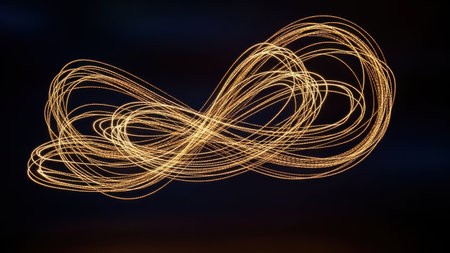 This image features a captivating display of golden spiral lines against a dark background. The lines create intricate patterns, swirling and intertwining to form a mesmerizing visual effect. The contrast between the bright golden lines and the dark backdrop enhances the overall aesthetic appeal of the image.