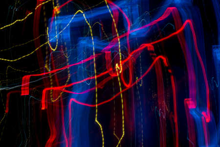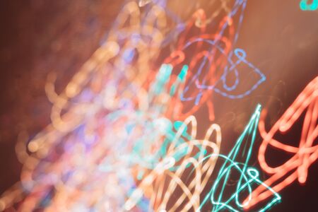 Abstract background for wallpaper. Many multi-colored lines. Long exposure garland shot.