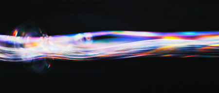 Vibrant bubbles create rainbow textures against a dark backdrop with prismatic effects