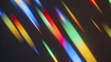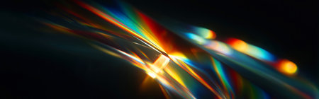 abstract background with rainbow-colored light refractions and glowing prism effects on dark backdrop.