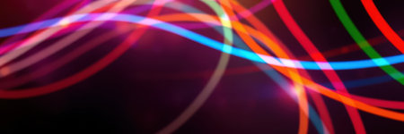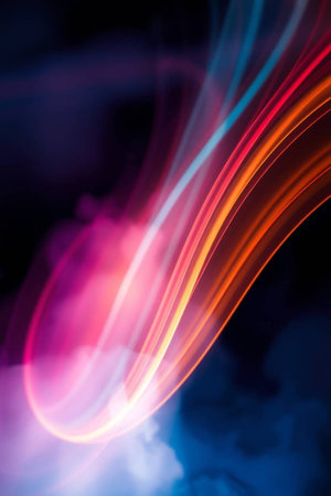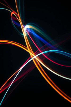 this abstract image features colorful neon light trails against a dark backdrop, creating a modern look