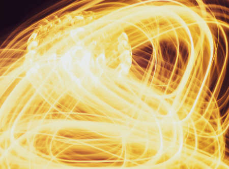 Dynamic motion blur of light trails resembling lightning on a dark background