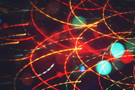 Abstract blurred colorful light effect on a black background. Long exposure photo of moving camera.