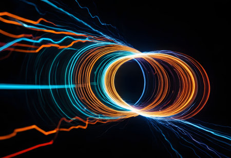Bright light trails create dynamic sparks against a dark background for visual impact