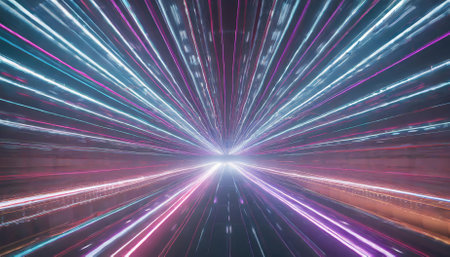 Abstract light trails forming a tunnel of neon colors, creating a dynamic and futuristic sense of high speed