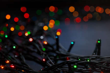 New Year's luminous garlands. New Year. Christmas background. Close-up. Toned. Festive background.