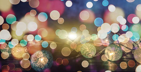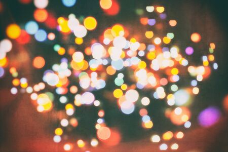 Bokeh christmas lights. Holiday background. Garland. Glitter. Defocused blinks. New Year. Bokeh retro style photo.