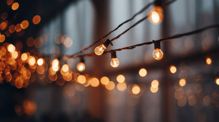 A mesmerizing collection of warm string lights with a beautiful bokeh effect, creating a cozy atmosphere perfect for indoor events, celebrations, and gatherings.