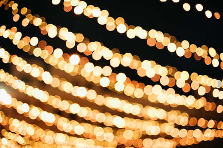 Blurred garland. City night light blur bokeh, defocused background. Christmas abstract.