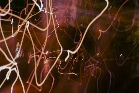 The image is a blurry, colorful, and dynamic representation of light. The lines and shapes seem to be moving and twisting, creating a sense of motion and energy. Scene is one of excitement