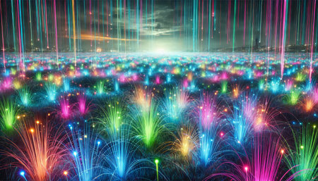 This captivating close-up of illuminated fiber reveals a stunning interplay of colors and shapes, creating a mesmerizing and vibrant abstract visual perfect for artistic projects.