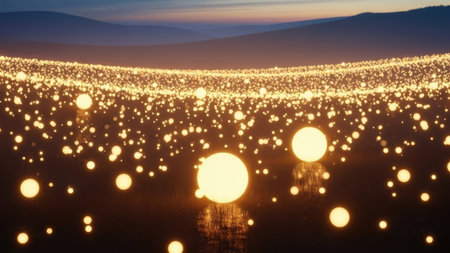 Magical luminous light trails dance at dusk creating an enchanting, ethereal outdoor display