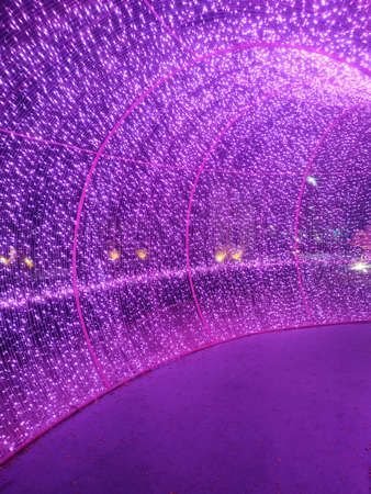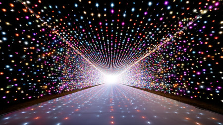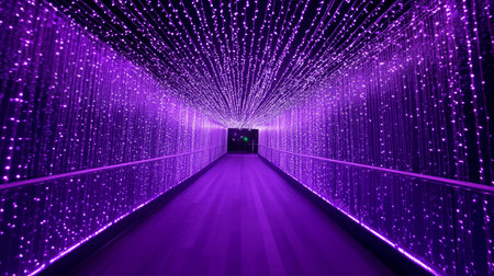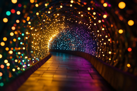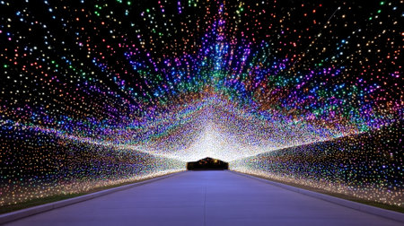 Mesmerizing light tunnel illuminates the night, creating a futuristic atmosphere with countless sparkling lights forming an immersive and festive pathway