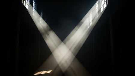 Explore the captivating beauty of light beams cutting through darkness, creating an enchanting and serene atmosphere. Perfect for dramatic visual storytelling.