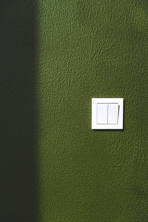 This image features a minimalist light switch on a textured green wall, showcasing modern aesthetics and simplicity in interior design, ideal for your decor projects.
