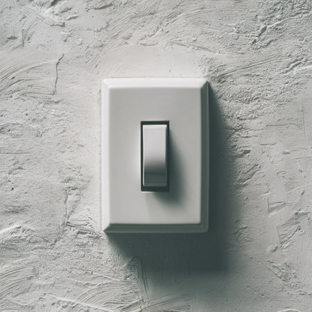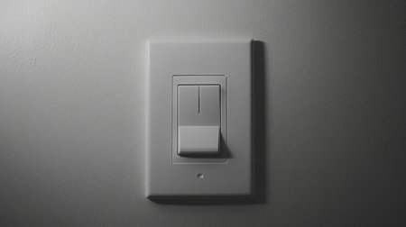 Minimalist light switch on white wall offers clean energy efficiency and modern design appeal for sustainable living