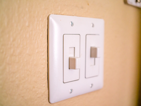 A pair of modern light switches mounted on a white wall, exemplifying contemporary design and functionality for residential or commercial settings.